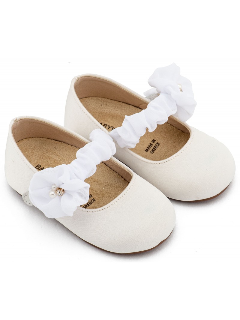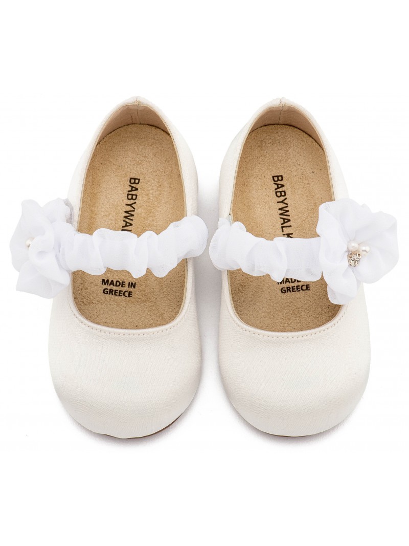 Βαπτιστικά Παπούτσια Για Κορίτσι Γοβάκια Υφασμάτινα Οικονομικά Babywalker BW4888 Λευκά