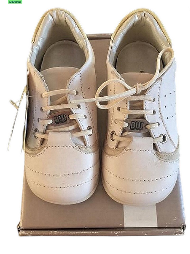 Εκρού παπουτσάκια βαπτιστικά για το αγόρι σας από την Babywalker, δετά κατασκευασμένα από δέρμα με αντιολισθητική σόλα, 100% ανατομικά .