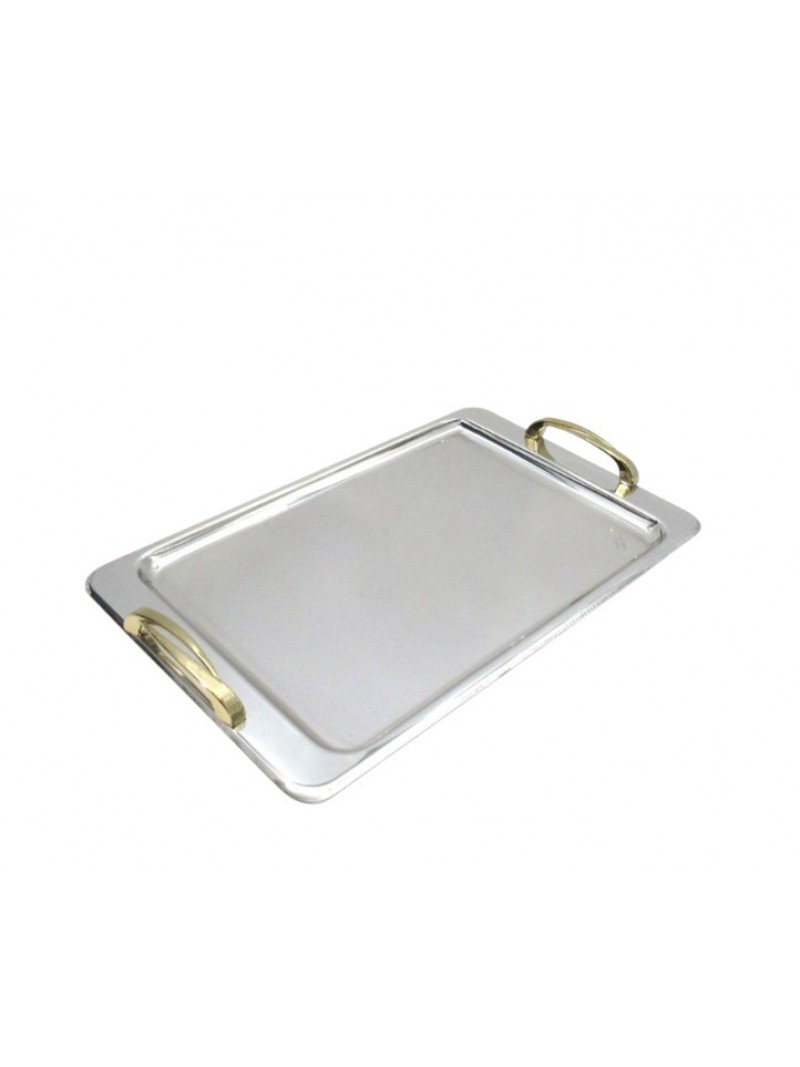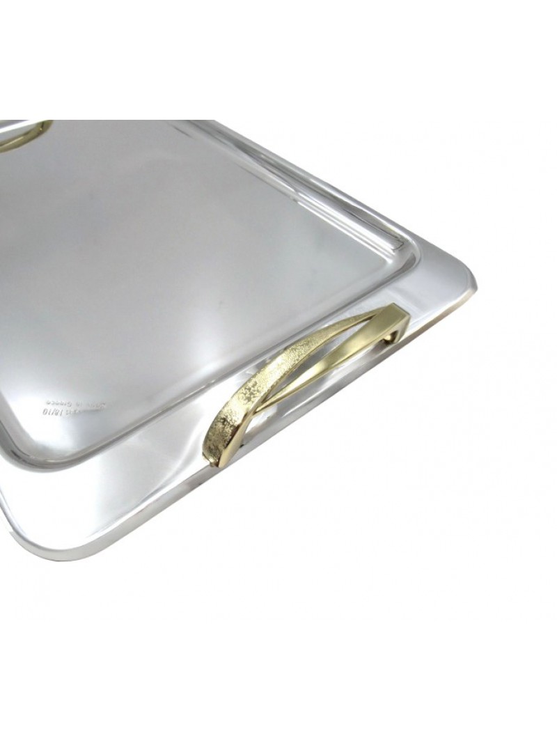 Δίσκος γάμου Inox ανοξείδωτος παραλληλόγραμος με επίχρυσα χερούλια.