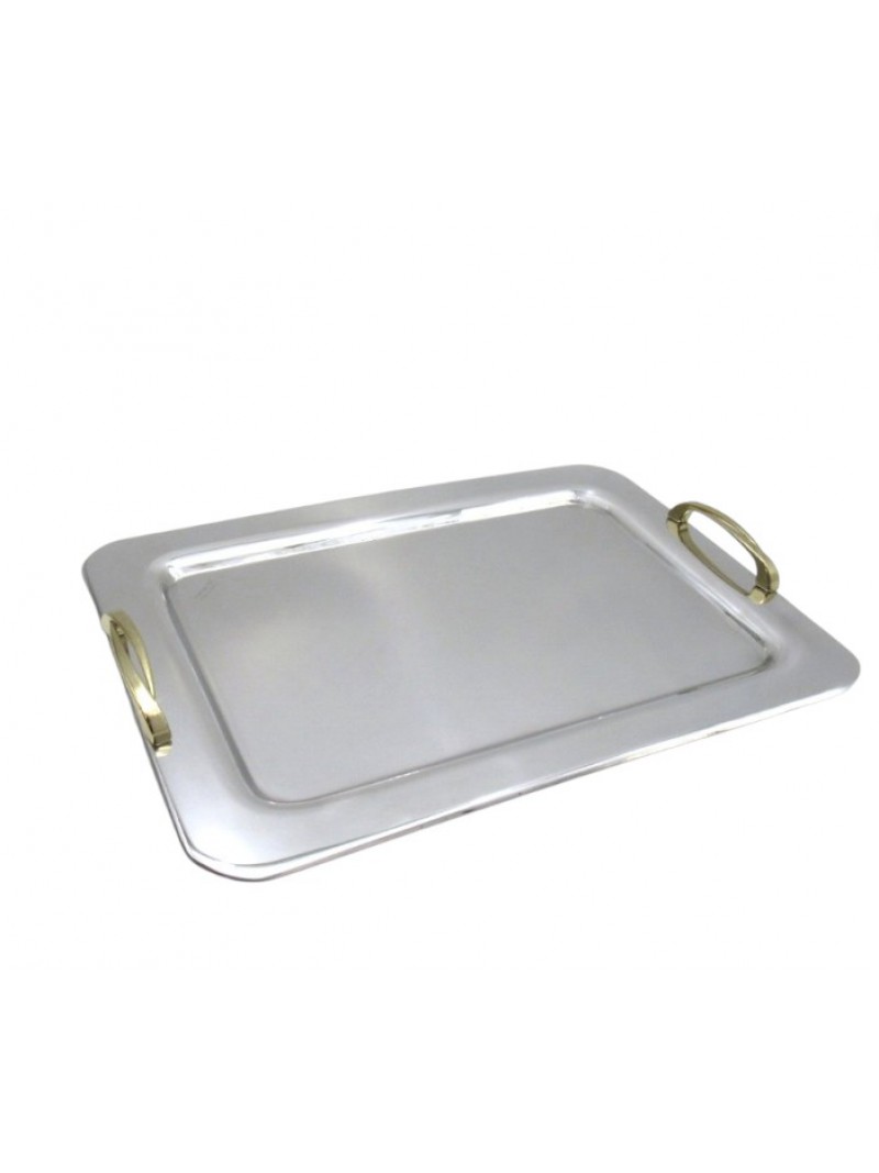 Δίσκος γάμου Inox ανοξείδωτος παραλληλόγραμος με επίχρυσα χερούλια.