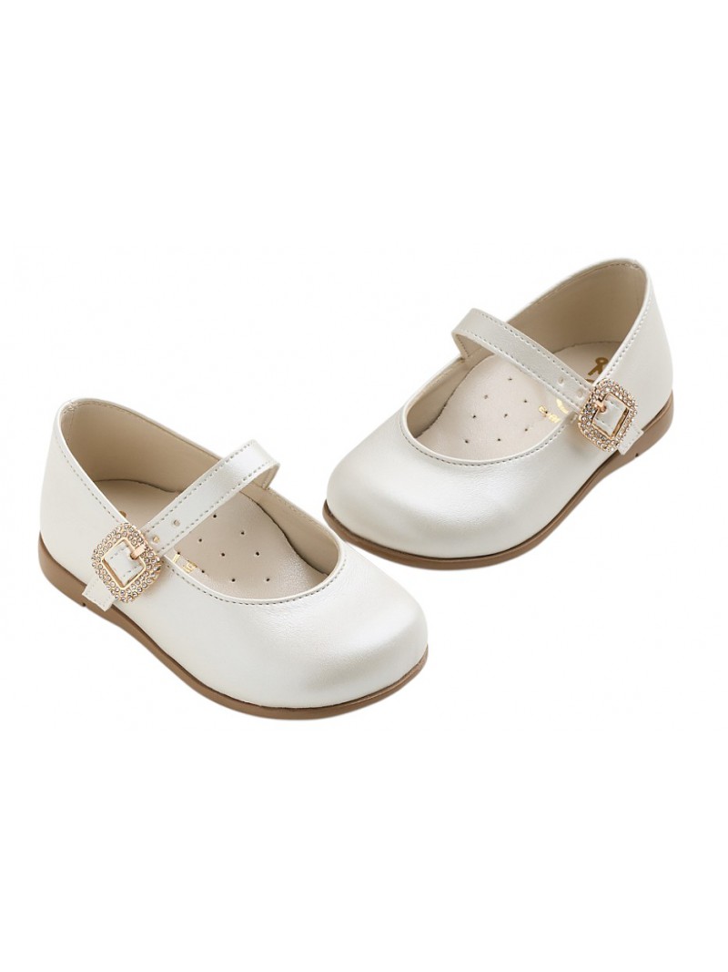 Δερμάτινα γοβάκια βάπτισης οικονομικά ανατομικά σε εκρού απόχρωση της Everkid με χρυσή τόκα και strass.