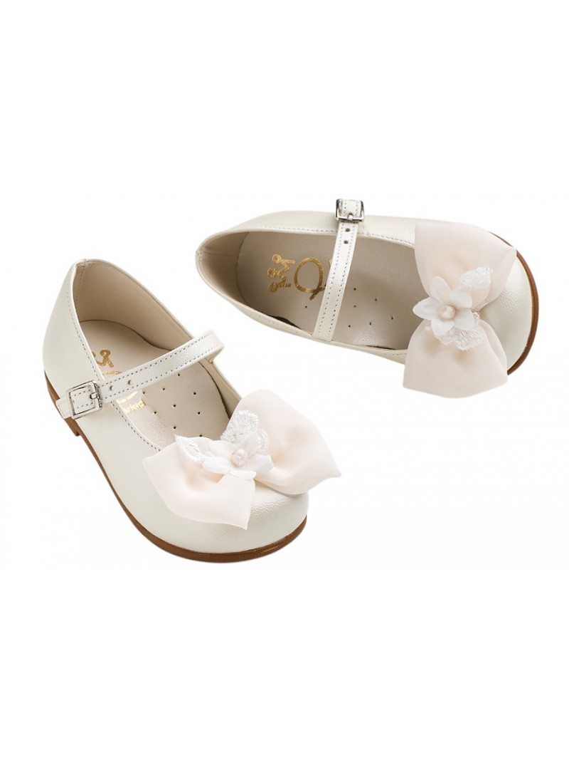 Παπούτσια Βάπτισης Κορίτσι Γοβάκια Δερμάτινα Εκρού Ανατομικά Με Φιόγκο Everkid K6114Ε