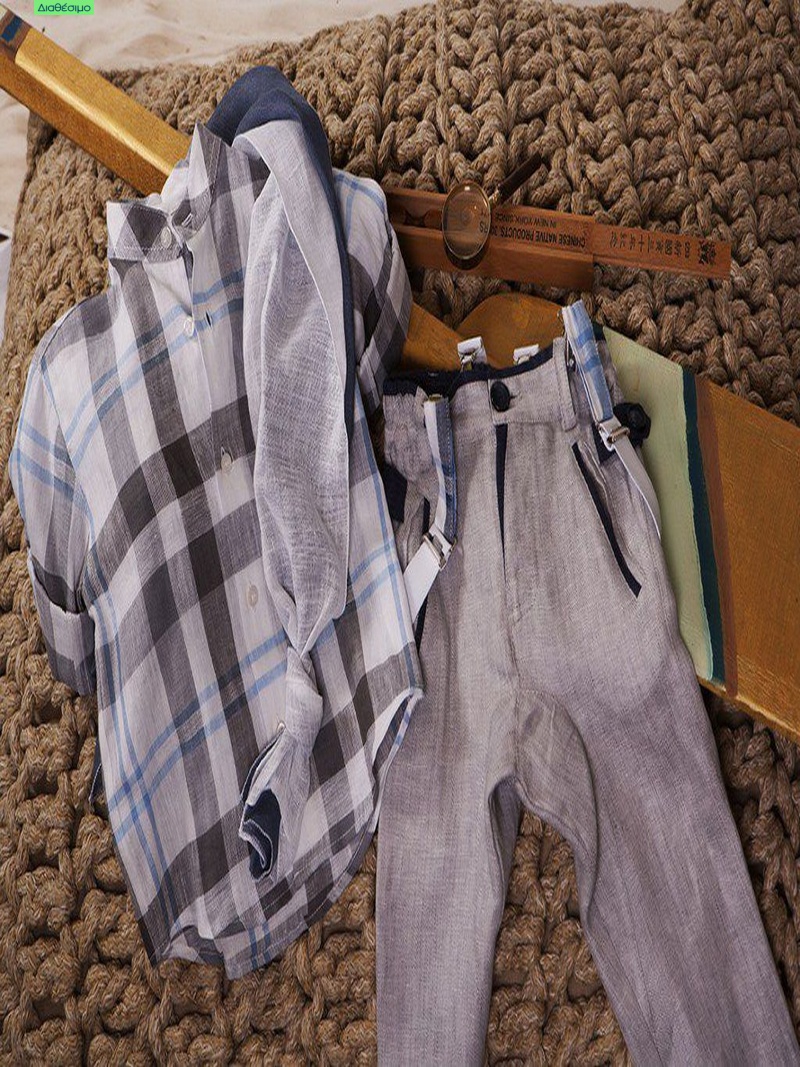 Βαπτιστικό κουστουμάκι από την Dolce Bambini γνωστή για την υψηλή ποιότητα βαπτιστικών ρούχων με μοντέρνο παντελονάκι, τιράντες, καρώ πουκάμισο, φουλάρι και καπελάκι !!Το κουστουμάκι βάπτισης Dolce Bambini περιλαμβάνει: