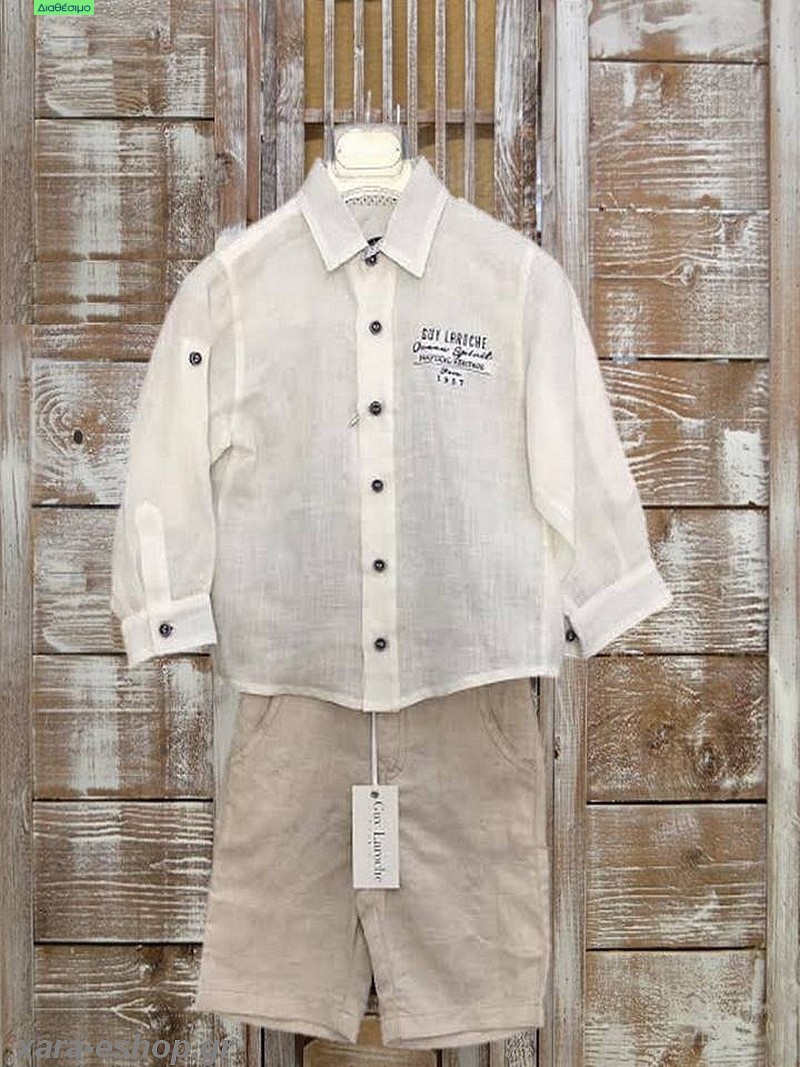 Οργανώστε μία επώνυμη και οικονομική βάπτιση για το αγόρι σας με το κουστουμάκι Guy Laroche σε όμορφες καλοκαιρινές αποχρώσεις, αποτελούμενο από μοντέρνο λινό μπεζ παντελόνι και λινό λευκό πουκάμισο με μικροσχέδια στο γιακά !!Αποτελεί μία επώνυμη επιλογή σε προσιτή τιμή, από τις νέες προτάσεις για καλοκαιρινές βαπτίσεις .