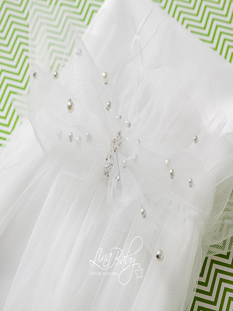 Βαπτιστικά λαδόπανα για κορίτσι με βαμβακερά εσώρουχα πλήρες σετ "Μπιάνκα-Bianca" της Lina Baby σε εκρού ή εκρού/ροζ χρώμα με με βολάν από τούλι ροζ και διακοσμητικό φιόγκο με πέρλες και strass. Μπορεί να κεντηθεί και το όνομα του παιδιού σας με επιπλέον 19 ευρώ κόστος και επιπλέον 5 ημέρες χρόνος παράδοσης.