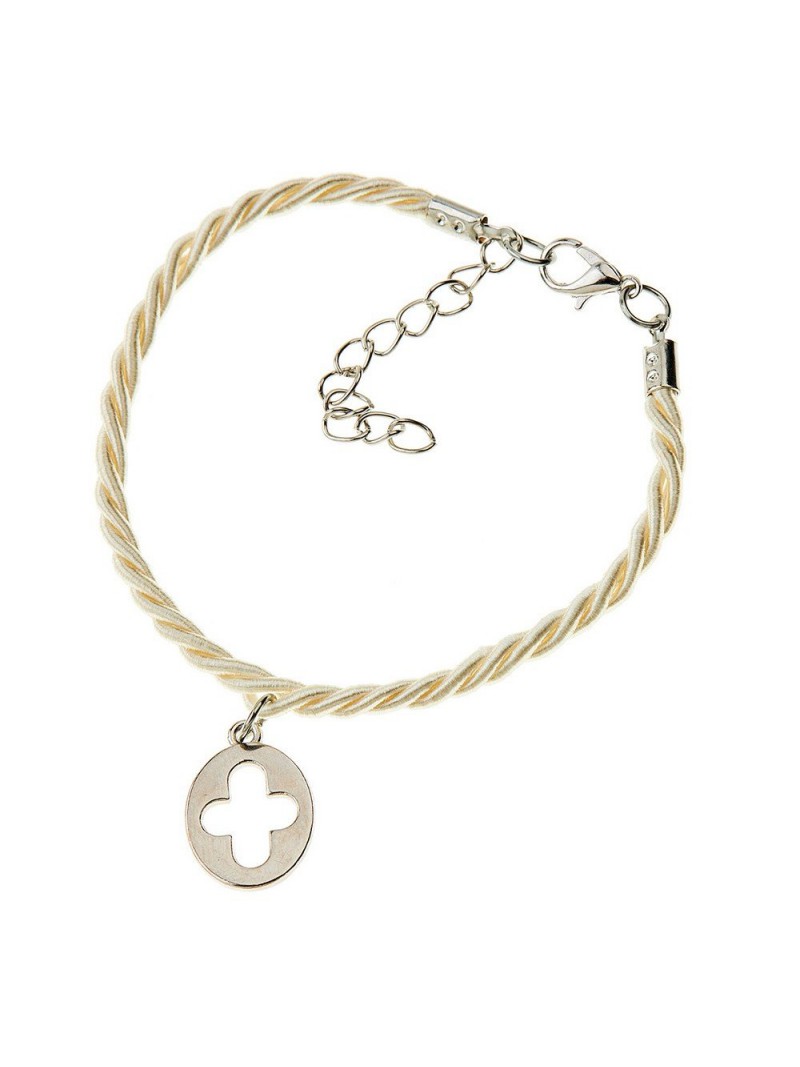 Οικονομικά μαρτυρικά βάπτισης για αγόρι οικονομικά βραχιολάκια πλεξούδα εκρού με κρεμαστό Σταυρό.