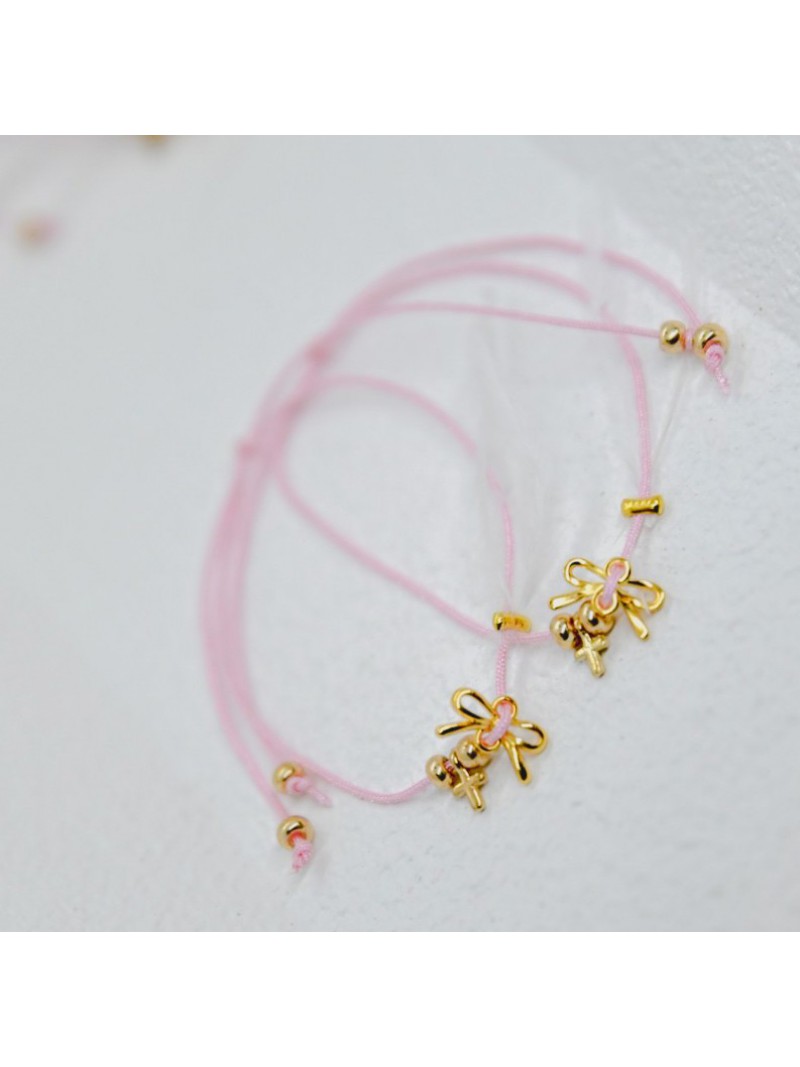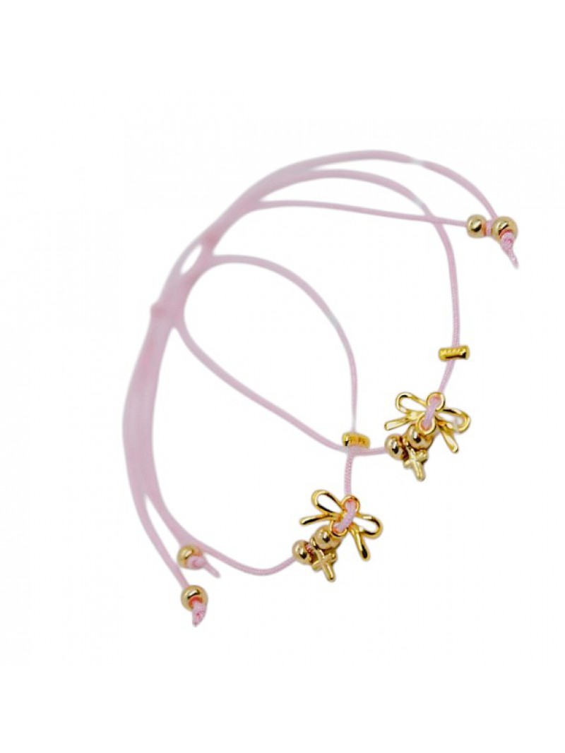 Μαρτυρικά Για Κορίτσι Βραχιολάκι Με Επίχρυσο Φιογκάκι 24Κ Και Επίχρυσο Σταυρό A121