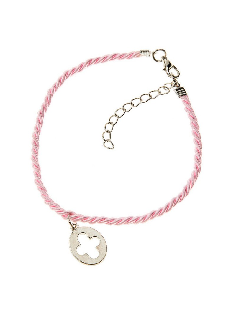 Βαπτιστικά Μαρτυρικά Για Κορίτσι Βραχιολάκια Πλεξούδα Ροζ Με Κρεμαστό Σταυρό NU1730 Οικονομικά Μοντέρνα