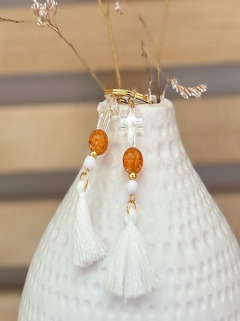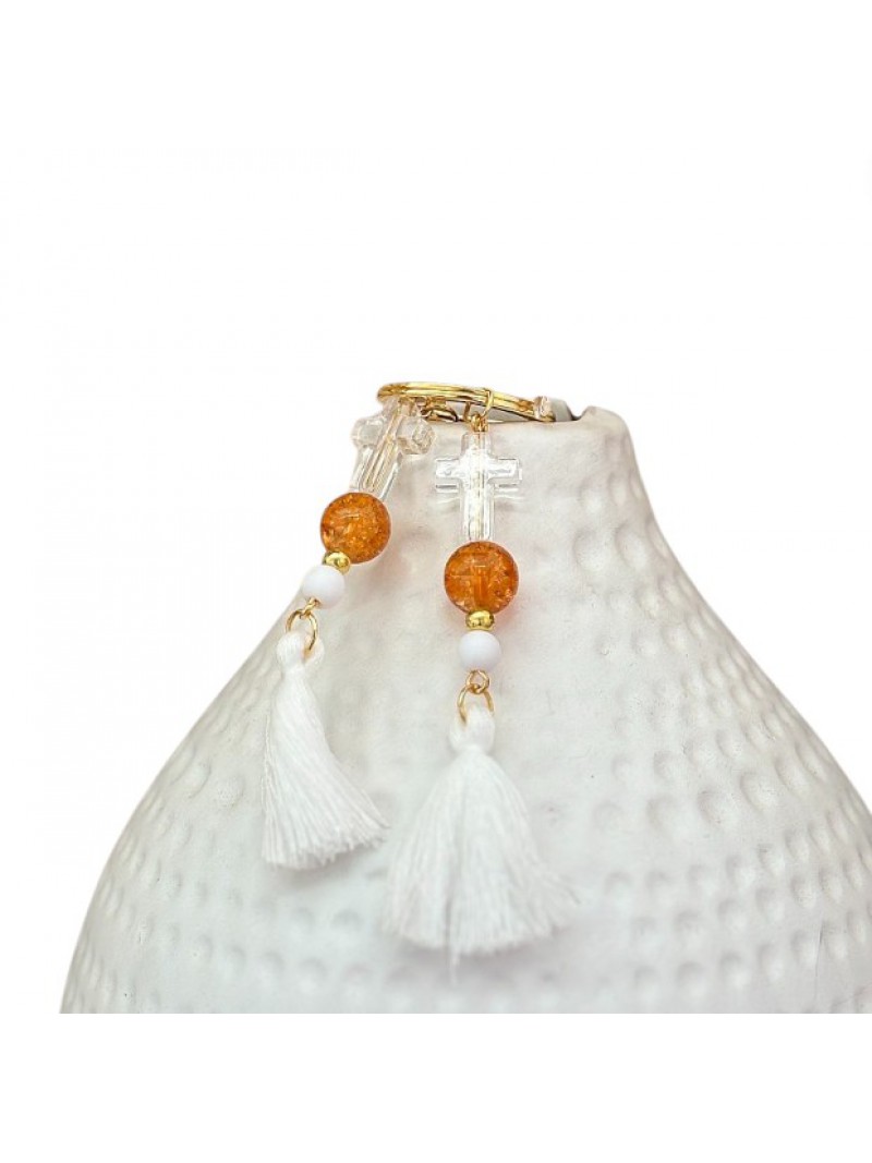 Βαπτιστικά μαρτυρικά για κορίτσι χειροποίητα μπρελόκ με χάντρα στρογγυλή κρακελέ και ακρυλικό Σταυρό !!