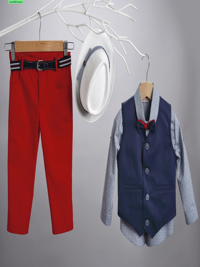 Βαπτιστικό κουστουμάκι για το μικρό σας αγοράκι από την New Life σε μοντέρνες αποχρώσεις. Περιλαμβάνει κόκκινο παντελόνι από βαμβακερή καπαρντίνα, ζώνη, μπλε βαμβακερό πουκάμισο με διάκοσμο ασορτί τετραγωνάκια, μπλε γιλέκο, παπιγιόν και καπελάκι.Το βαπτιστικό κουστουμάκι New Life περιλαμβάνει:
