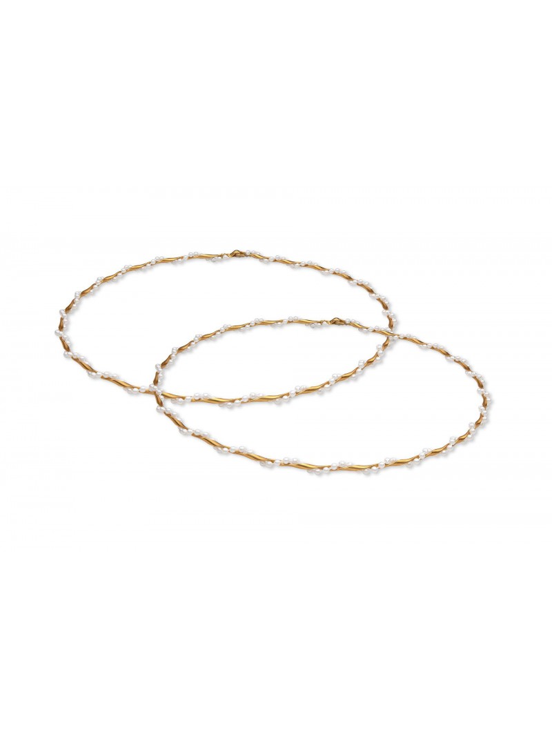 Στέφανα γάμου μοντέρνα οικονομικά, βέργα χρυσό-ματ πλεγμένη με λευκές πέρλες, δουλεμένα με μεράκι, μικρά έργα τέχνης για την μεγάλη στιγμή.....