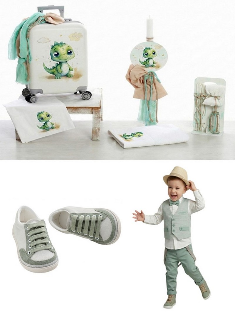 Βαπτιστικό Πακέτο "Δεινόσαυρος" Με Ρούχα/Βαλίτσα Σετ Ολοκληρωμένο Οικονομικό 26203