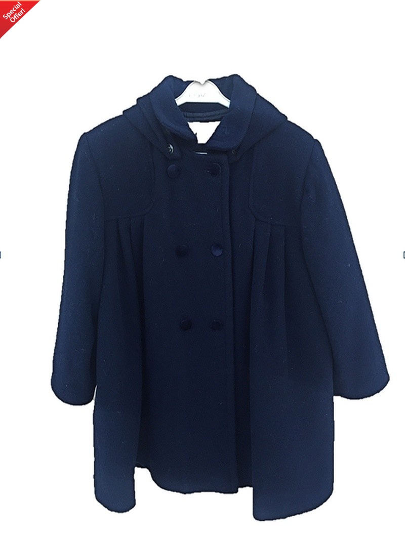 Παλτουδάκι βάπτισης με κουκούλα, μάλλινο, κομψό και απαλό σε μπλε απόχρωση και άλφα γραμμή για επίσημες και ζεστές χειμερινές εμφανίσεις .