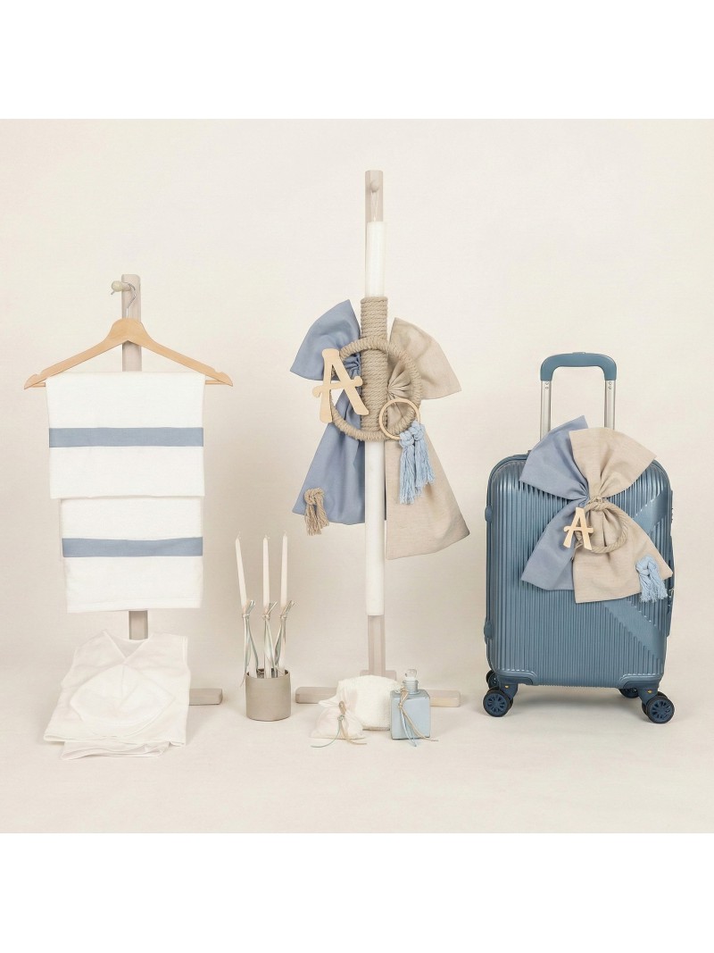 Ολοκληρωμένο Σετ Βάπτισης Για Αγόρι Θέμα "Μονόγραμμα" Πακέτο Οικονομικό Με Βαλίτσα Nounos 26164
