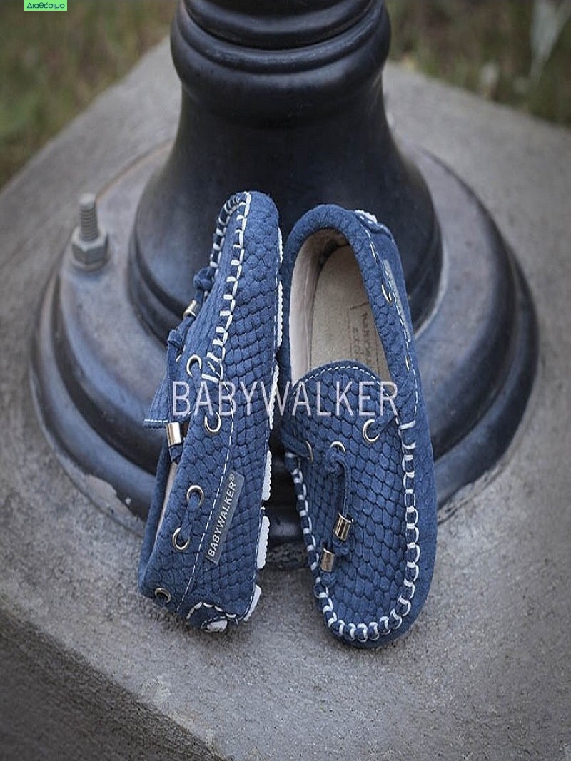 Παπουτσάκια βάπτισης για αγόρι από την BABYWALKER σε μπλε χρώμα κατασκευασμένο από τυπωμένο και μαλακό δέρμα στυλ κροκό, με διακοσμητικά κορδόνια !!