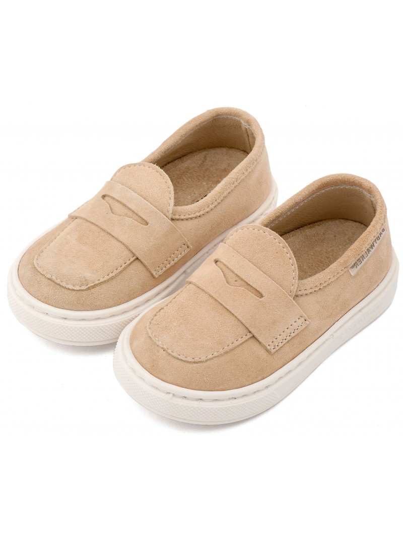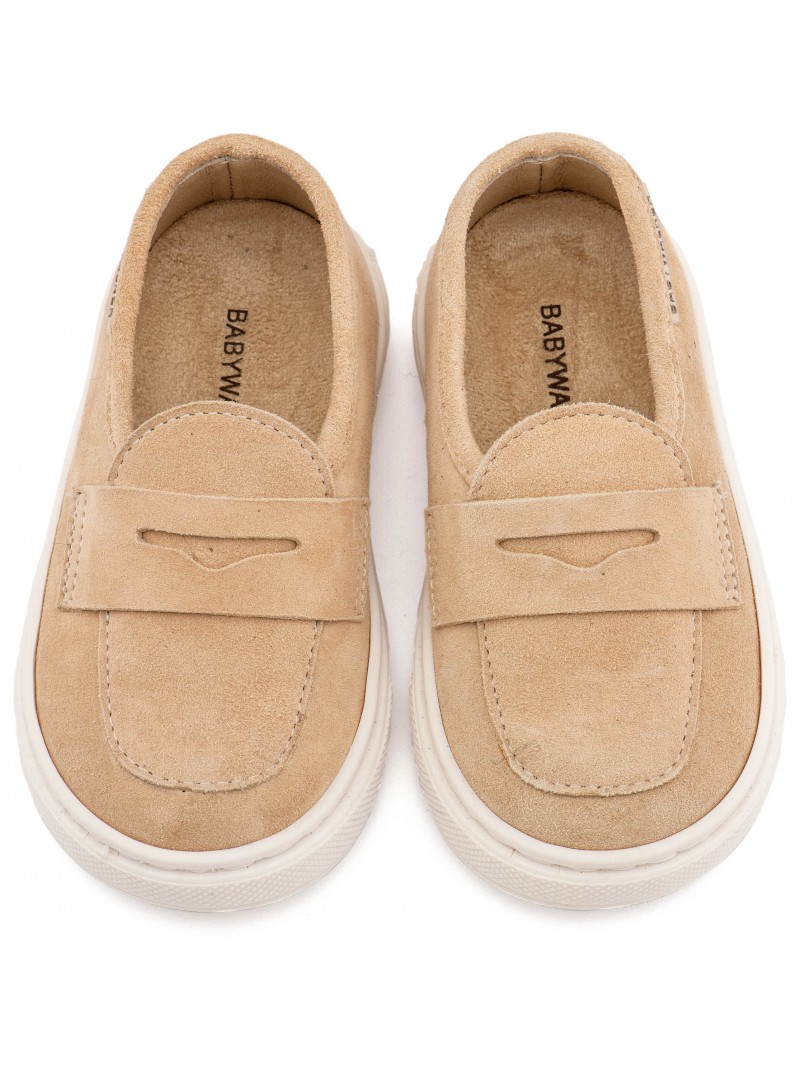 Βαπτιστικά παπούτσια για αγόρι δερμάτινα suede loafers της Babywalker σε μπεζ απόχρωση.