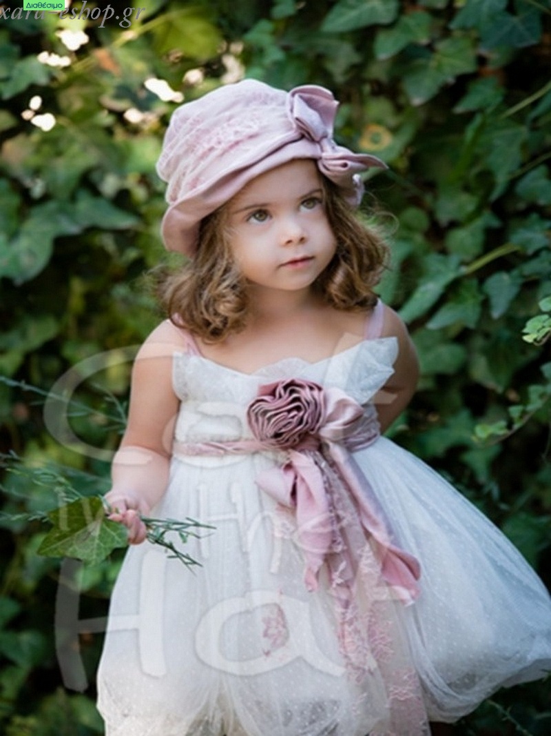 Ρομαντικό φορεματάκι βάπτισης Designer's Cat από τούλι πουά με μεταξωτή ζώνη και εντυπωσιακό λουλούδι. Συνοδεύεται από ασορτί χειροποίητο μεταξωτό καπέλο. Το σετ περιλαμβάνει το φόρεμα και το καπελάκι .