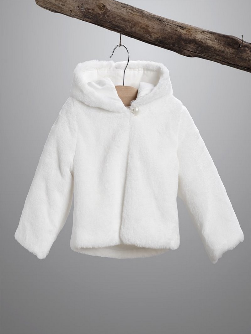 Οικονομικό Μπολερό Βάπτισης Μαντό Γουνάκι Χειμερινό 2998-2 Εκρού Με Κουκούλα