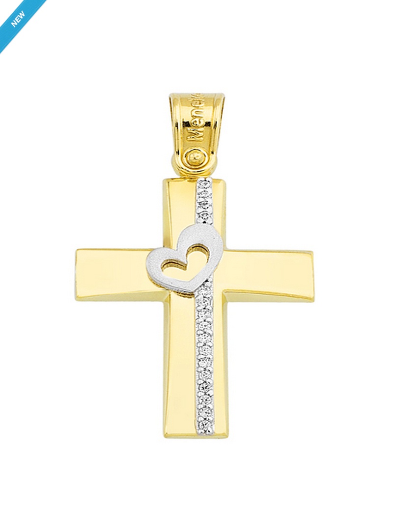 Σταυρός Βάπτισης Κορίτσι Χρυσός Πέτρες με Καρδιά 11706