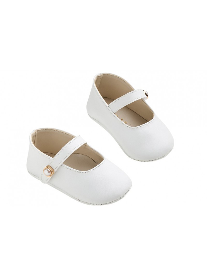 Παπουτσάκια αγκαλιάς για κορίτσι γοβάκια δερμάτινα λευκά της Everkid με διακοσμητική πέρλα.