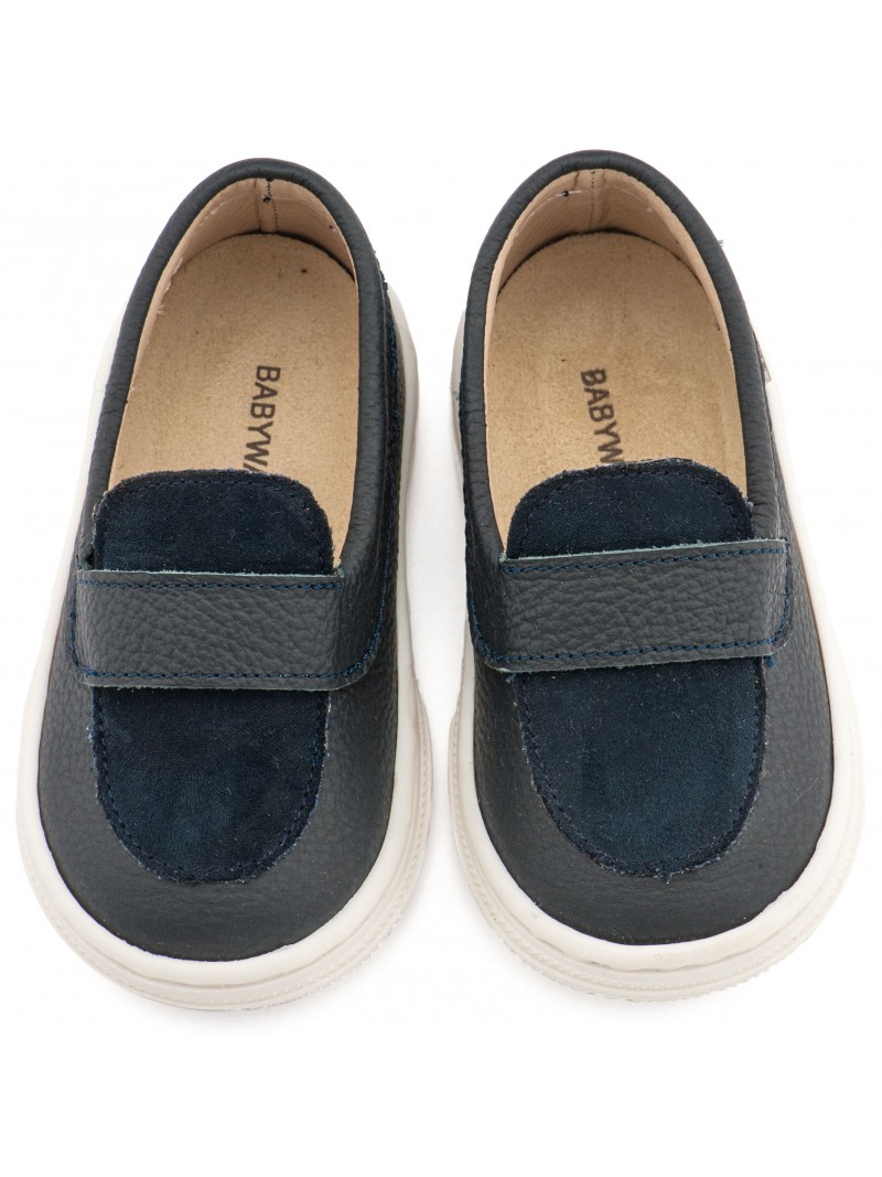 Βαπτιστικά παπούτσια για αγόρι δερμάτινα μοκασίνι της Babywalker σε άνετη και μοντέρνα και μπλε απόχρωση .