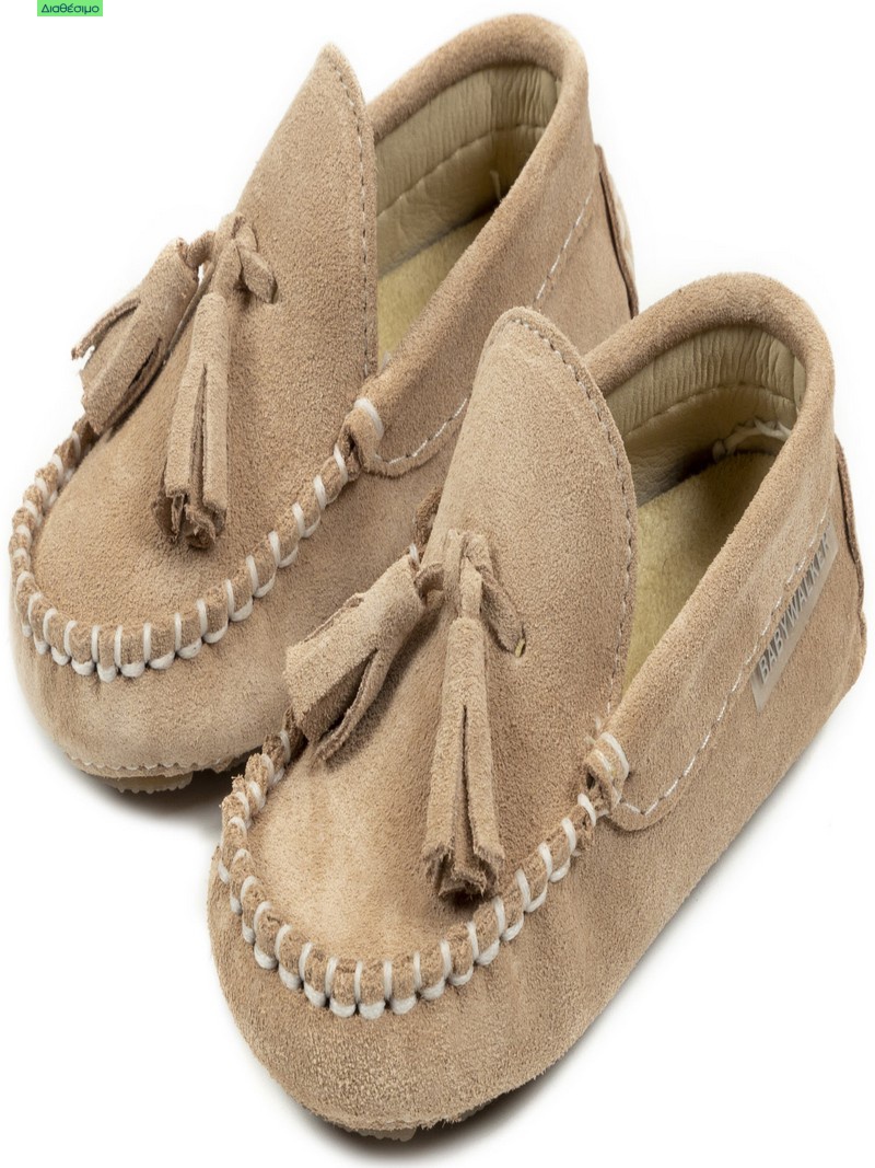 Βαπτιστικά παπούτσια για αγόρι μοντέρνα loafer καστόρινα με δερμάτινα φουντάκια από την BABYWALKER σε nude απόχρωση. Άνετο, μαλακό, μοντέρνο !!