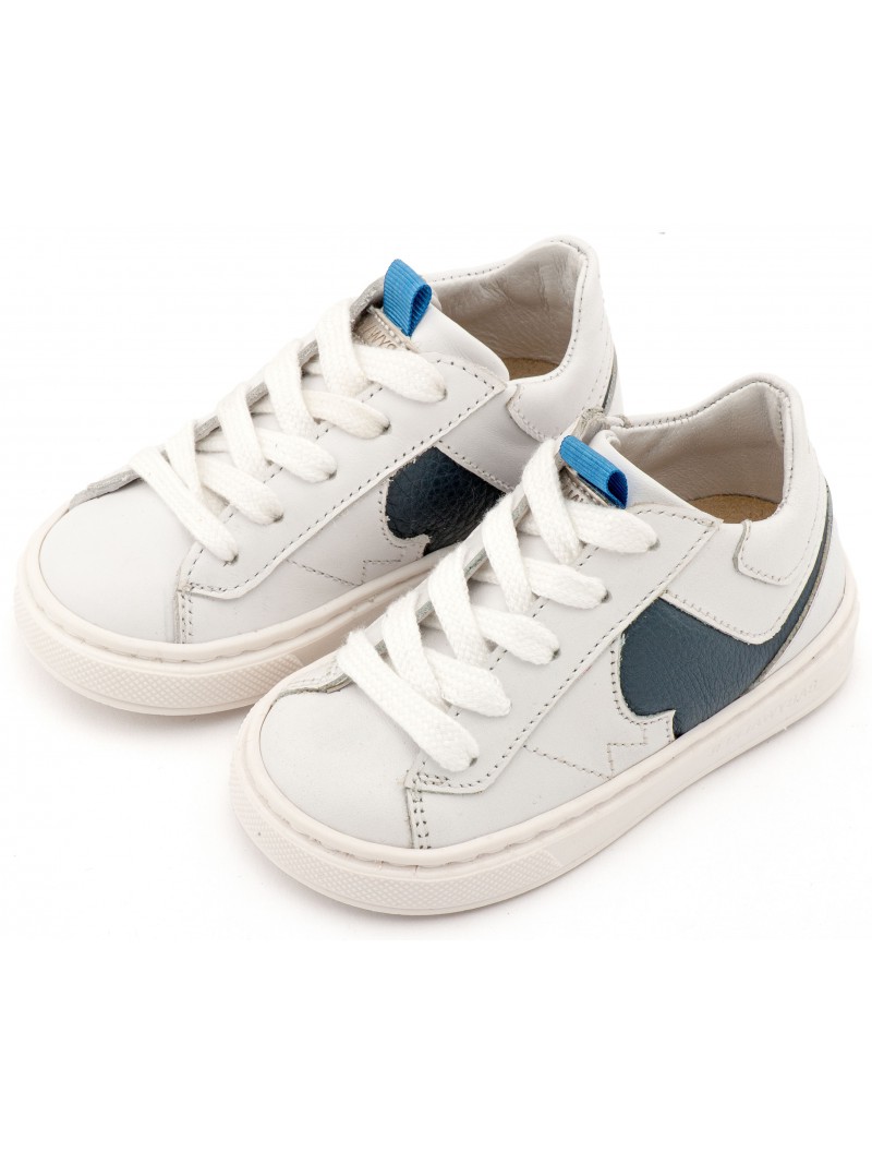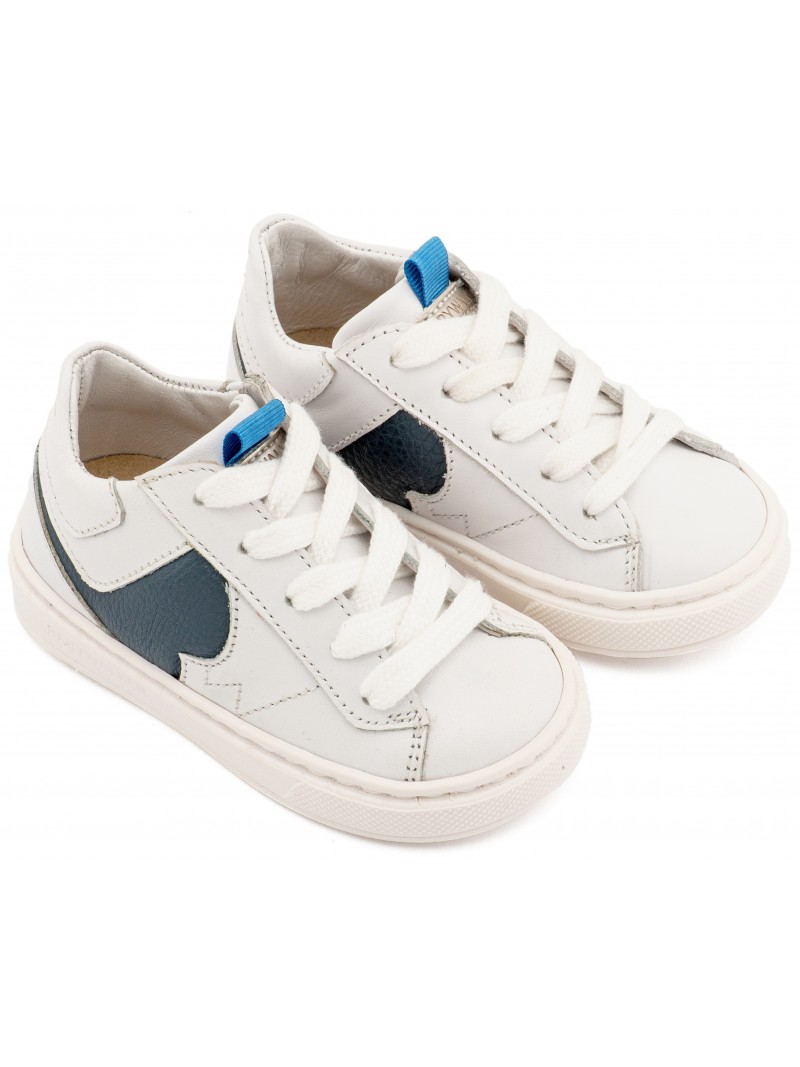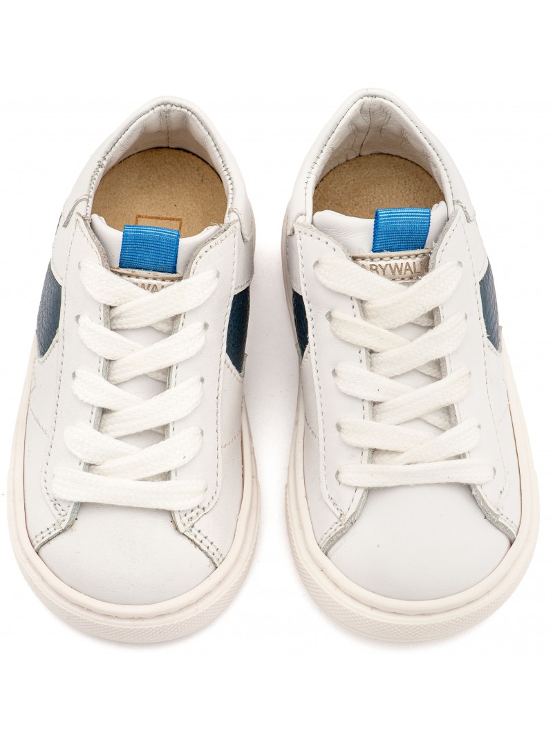 Βαπτιστικά παπούτσια για το αγόρι σας δερμάτινα sneakers ανατομικά της BABYWALKER και την exclusive σειρά σε λευκή/μπλε απόχρωση.
