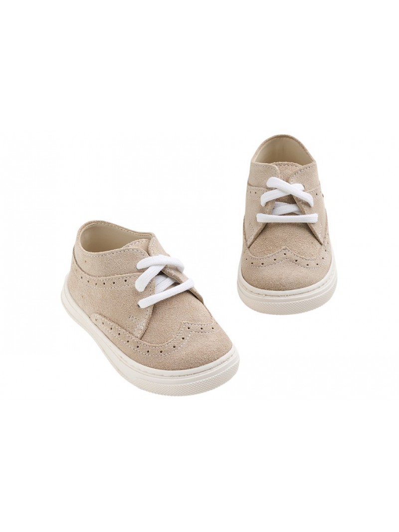 Παπούτσια βάπτισης για αγόρι δερμάτινα καστόρ εκρού sneakers της Everkid σε μοντέρνα γραμμή .