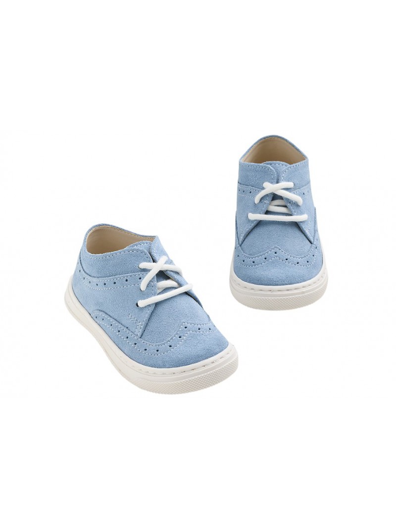 Δερμάτινα παπούτσια βάπτισης για αγόρι καστόρ γαλάζια sneakers της Everkid σε μοντέρνα γραμμή .