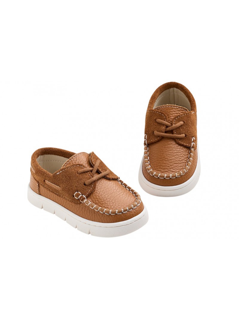 Επώνυμα παπούτσια βάπτισης για αγόρι μοκασίνι από ταμπά δέρμα και ταμπά καστόρ δέρμα της Everkid σε μοντέρνα γραμμή .
