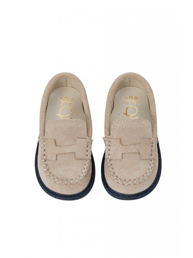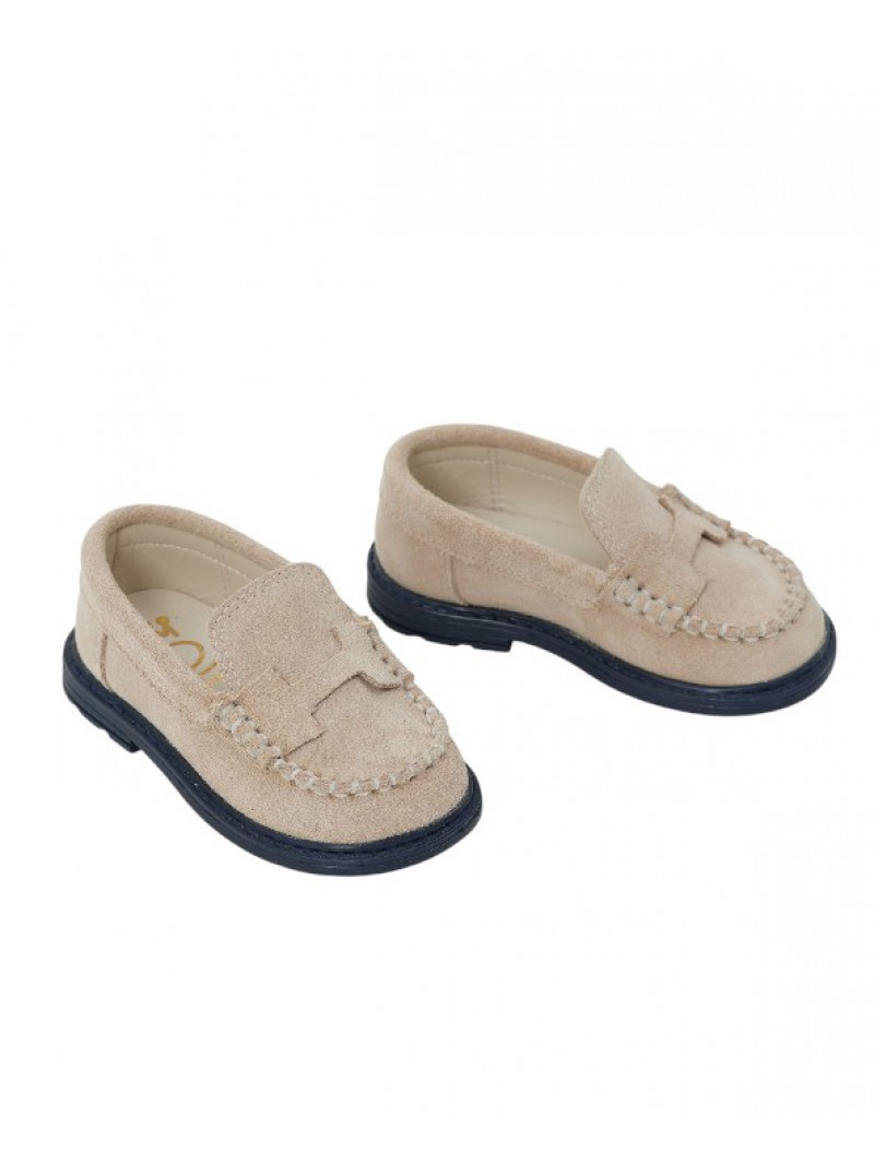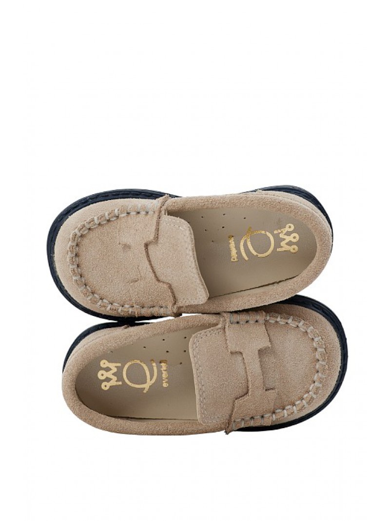Παπούτσια βάπτισης για αγόρι Χειμερινά loafers οικονομικά της Everkid σε μπεζ καστόρ με χειροποίητη ραφή !!