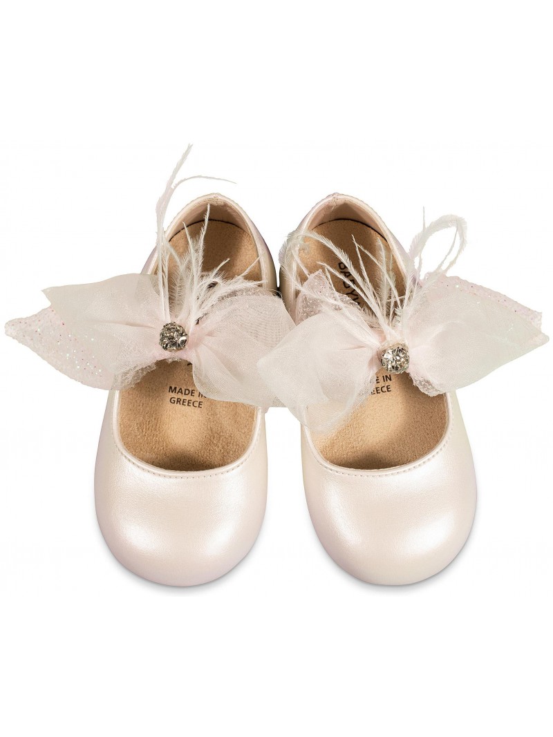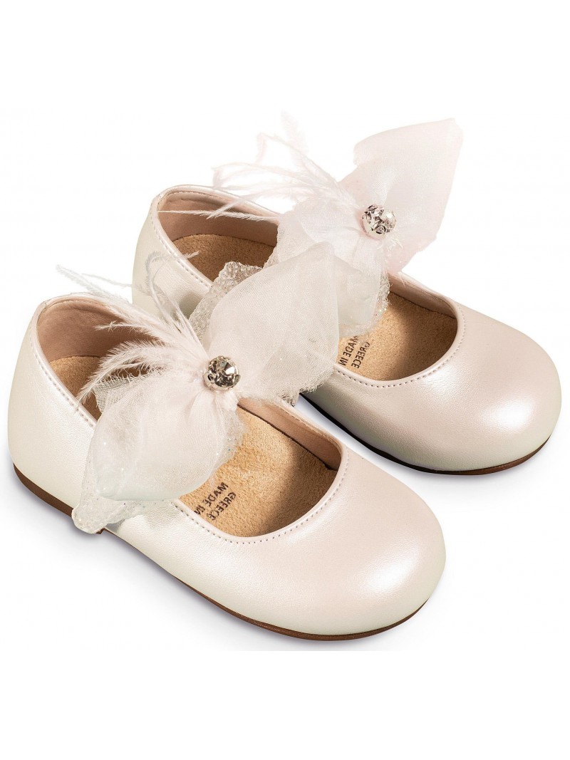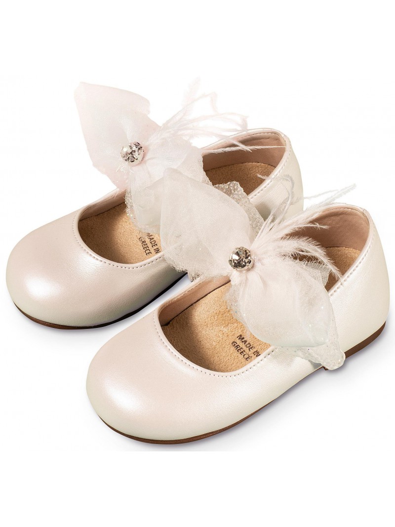 Γοβάκια βάπτισης Babywalker από συνθετικό δέρμα πέρλα εκρού, με μονή μπαρέτα, διακοσμημένη με χειροποίητο φιόγκο !!