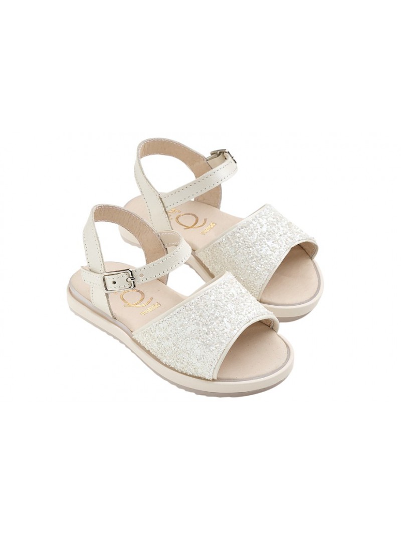 Πέδιλα βάπτισης για κορίτσι δερμάτινα εκρού της Everkid διακοσμημένα με off white ματ glitter.