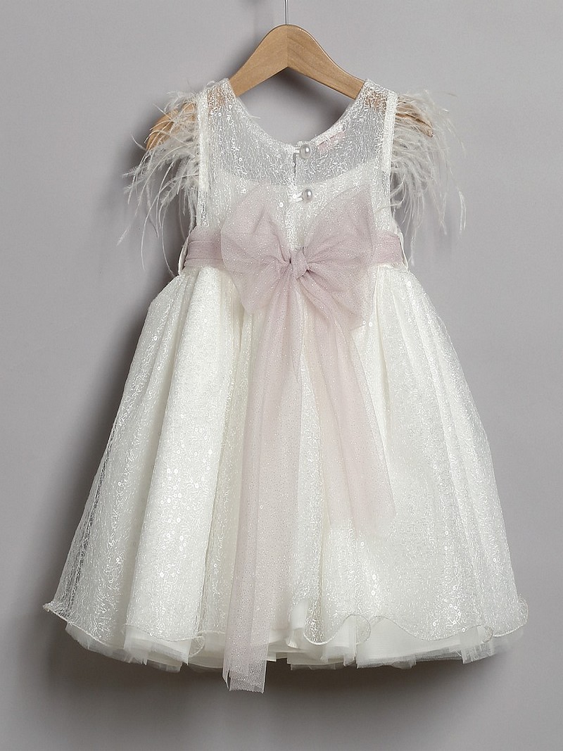 Βαπτιστικό φόρεμα από εκρού δαντέλα με παγιέτες και μπολερό οικονομικό μοντέρνο σετ της New Life με εσωτερική βαμβακερή φόδρα. Διακοσμείται εμπρός με λουλούδι από τούλι με glitter τούλι και ασορτί ζώνη η οποία σχηματίζει φιόγκο στο πίσω μέρος. Συνοδεύεται στην ίδια τιμή από εκρού μπολερό από δαντέλα και ανάλογη κορδέλα για τα μαλλιά .