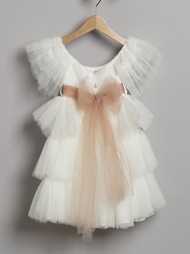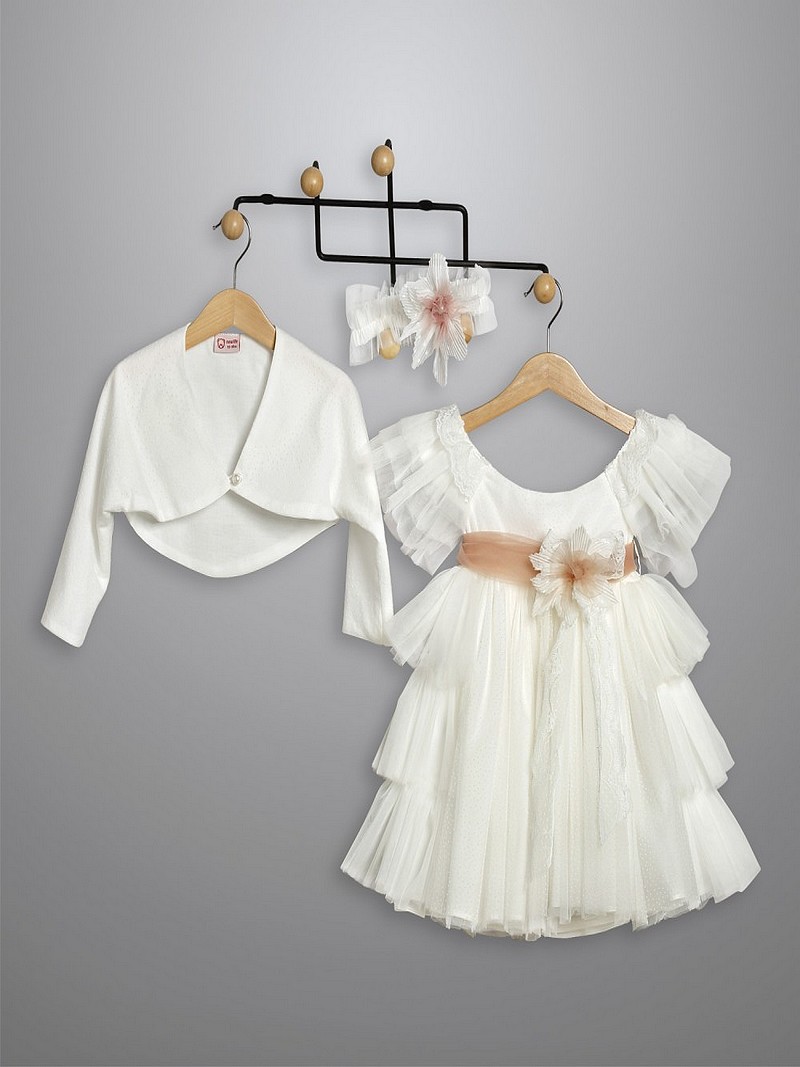 Φόρεμα Βάπτισης Με Μπολερό Εκρού Τούλι Οικονομικό Επώνυμο Μοντέρνο New Life 3018-2