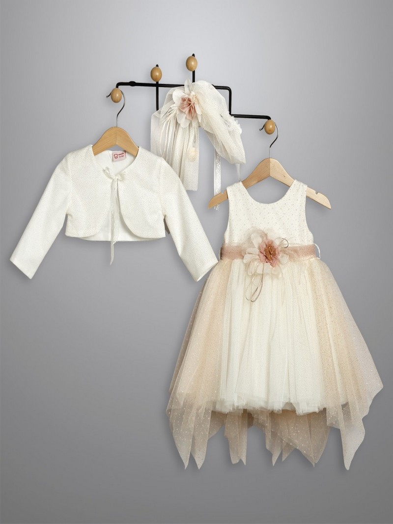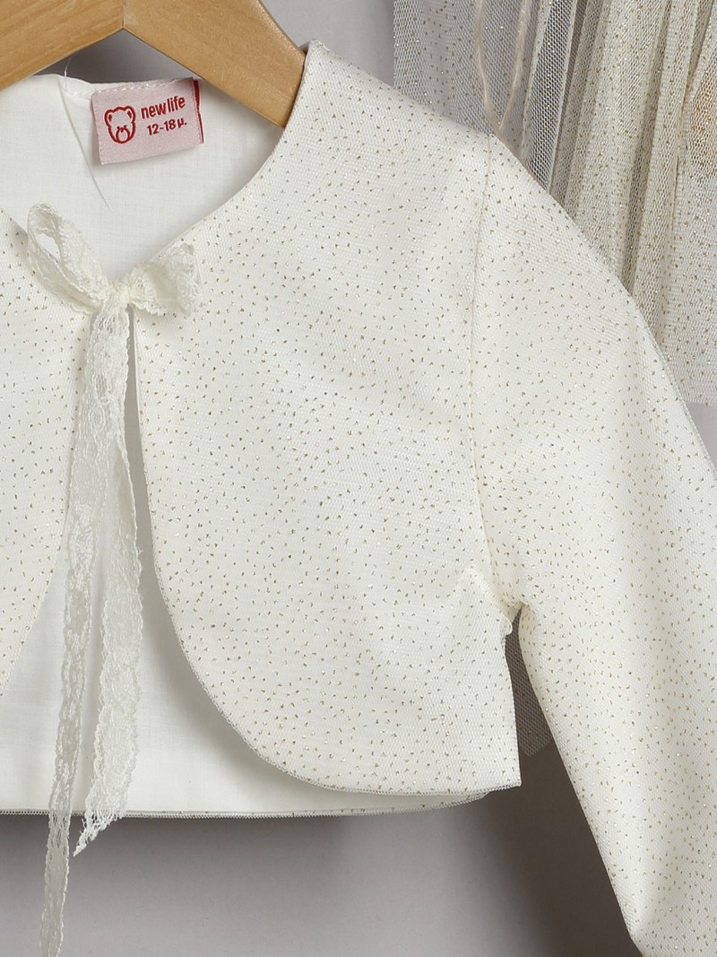 Βαπτιστικό Φόρεμα Με Ζακετάκι Χρυσό Τούλι Glitter Οικονομικό Επώνυμο Μοντέρνο New Life 3024-3