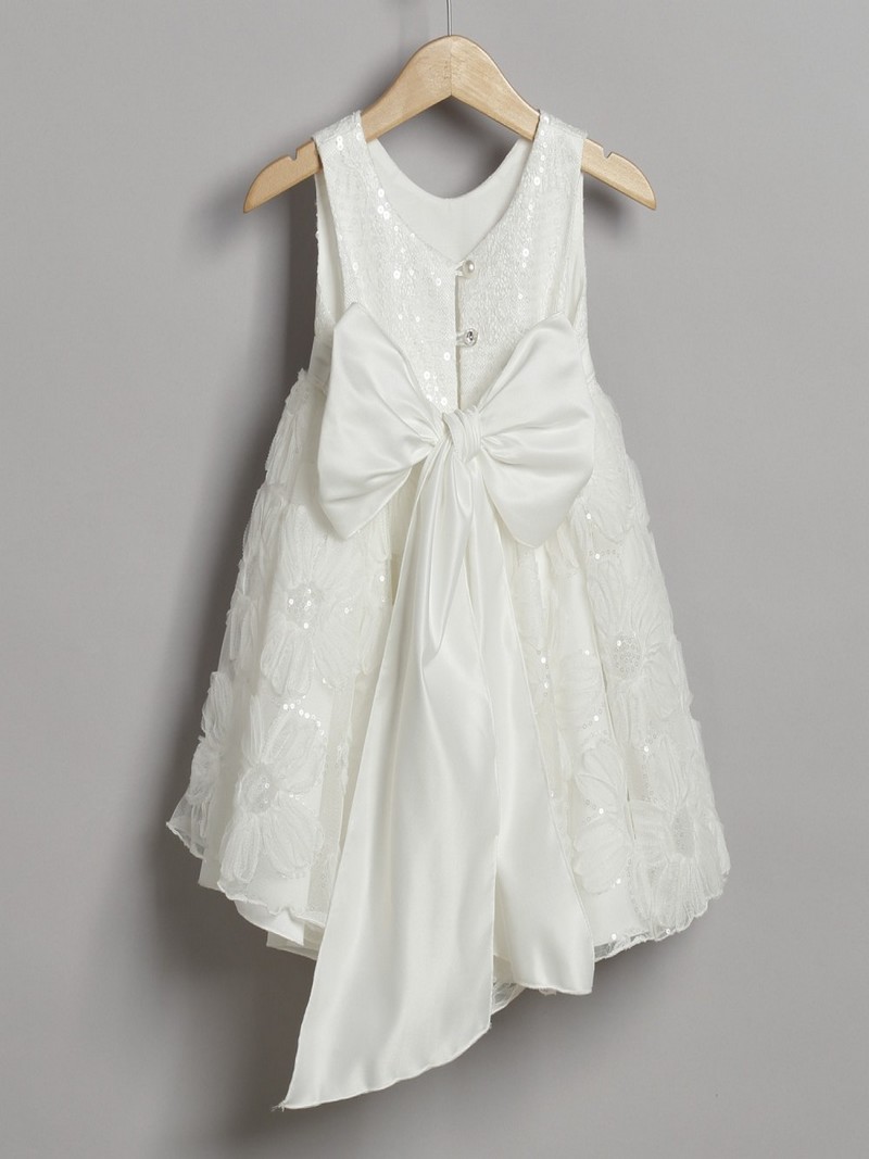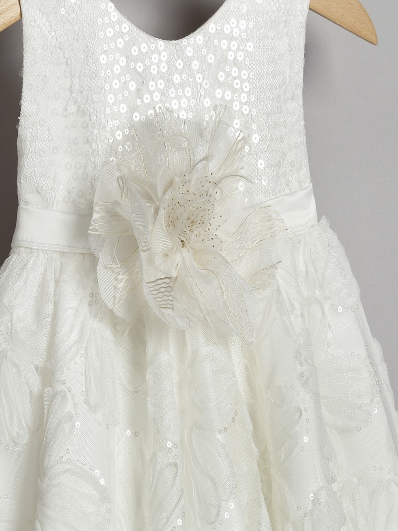 Φόρεμα βάπτισης από εκρού τούλινη δαντέλα με μπολερό οικονομικό σετ ολοκληρωμένο μοντέρνο της New Life με δεύτερη φούστα από σωμόν τούλι και εσωτερική βαμβακερή φόδρα. Διακοσμείται εμπρός από δαντελένια και τούλινα λουλούδια και εκρού τούλινη ζώνη που δημιουργεί φιόγκο στο πίσω μέρος. Συνοδεύεται στην ίδια τιμή από δαντέλα μπολερό σε εκρού απόχρωση και ασορτί κορδέλα για τα μαλλιά .