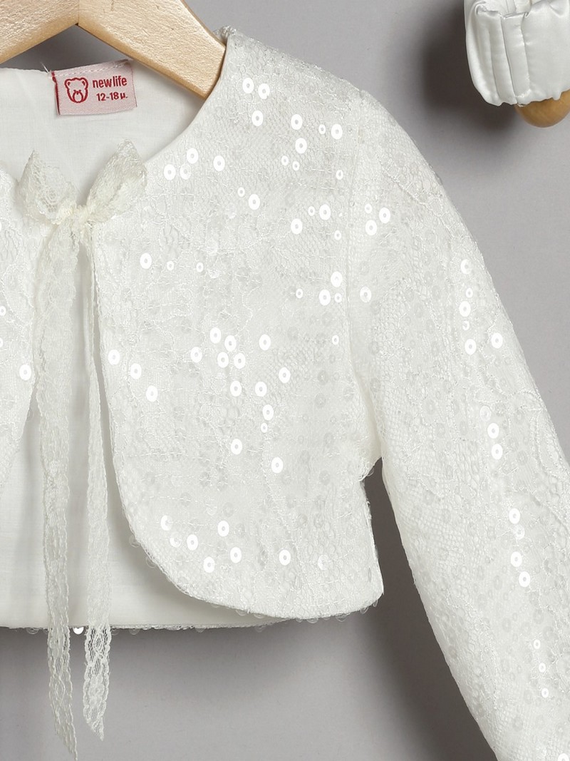 Βαπτιστικό Φόρεμα Με Ζακετάκι Εκρού Τούλινη Δαντέλα Οικονομικό Επώνυμο Μοντέρνο New Life 3030-2