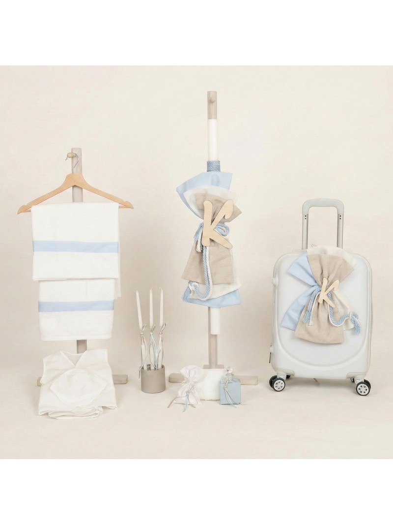 Βαπτιστικό Σετ Αγόρι Θέμα "Μονόγραμμα" Οικονομικό Πακέτο Ολοκληρωμένο Με Βαλίτσα Nounos 26162